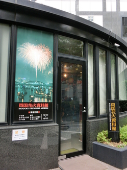 相撲通りを南に進み、両国花火資料館に来ました。現在、毎年開かれる隅田川花火大会ですが、この両国の花火こそ、江戸から伝わる水神祭、川開きで悪霊を払うために打ち上げたという古い歴史を持っています。
